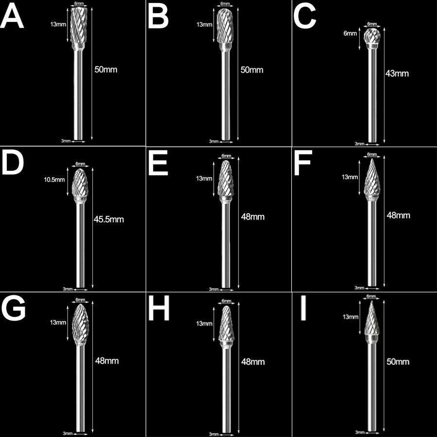 1/8 Tungsten Carbide 3x6mm Drill Bits Rotary Burrs Metal Diamond Grinding Woodworking Milling Cutters For Drill Bits